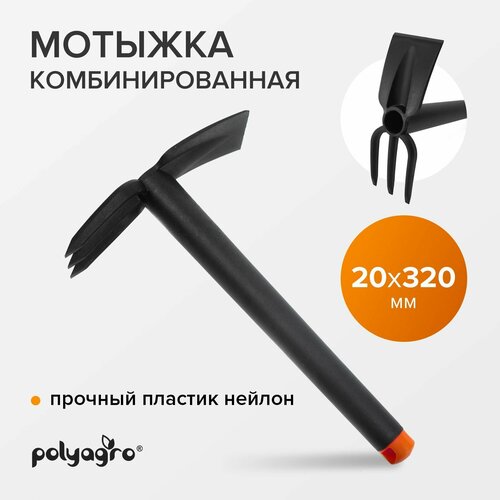 Мотыга - рыхлитель садовая, комбинированная, 3 - зубая Polyagro -универсальный садовый инструмент, необходимый садоводам и дачникам. Предназначен для ухода за садом и огородом : рыхление, аэрация, уничтожение сорняков и прополка почвы на небольших грядках и клумбах. Рабочая часть садового инвентаря выполнена из стали и окрашена для предохранения от коррозии. Рукоятка из обрезиненного пластика с винтовой заглушой. Возможно удлинение при помощи дополнительной рукоятки. Мотыжка комбинированная содержит в себе два инструмента для работы - с одной стороны лопатка или по-другому тяпка, с другой стороны - грабли. Размер мотыги: 180*325 мм. Приобретая такой универсальный садовый инструмент, Вы получаете надежного и удобного помощника для ухода за вашим садом, огородом, дачей.