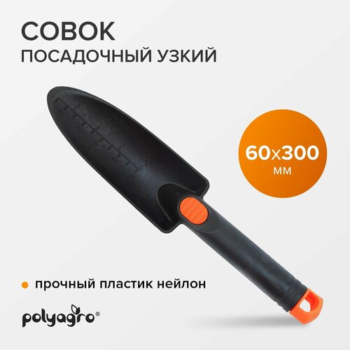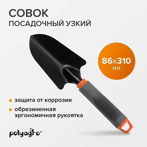 Совок садовый, посадочный, узкий, с обрезиненной рукояткой, Polyagro