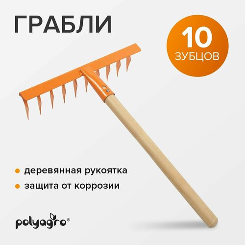 Грабли штыревые, садовые, витые 10 - зубые, с деревянной рукояткой, Polyagro