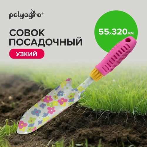Совок садовый посадочный узкий, с обрезиненной рукояткой, Polyagro