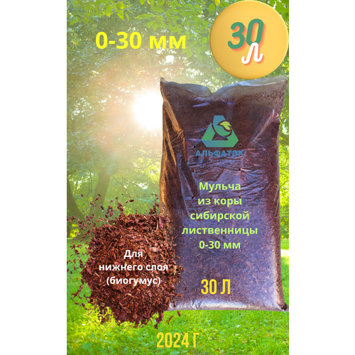 Мульча из коры сибирской лиственницы (0-3 см), 30 литров