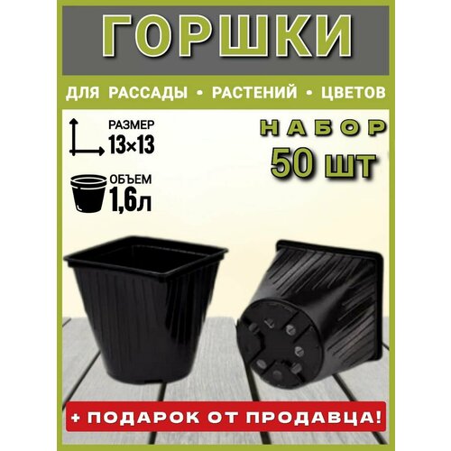 Горшок рассадный квадратно-круглый 1,6 л, 50шт