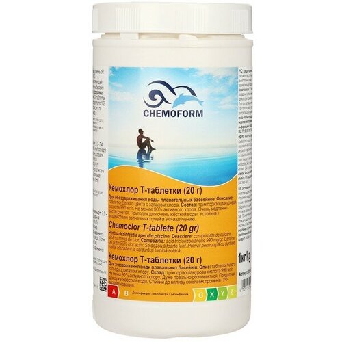 Всё в одном: хлорные мульти - таблетки для бассейна по 200 г в банке 1 кг. Chemoform (кемоформ)