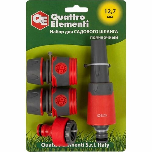 QUATTRO ELEMENTI Набор поливочный 4 предмета. Соединитель 1/2-2 шт, штуцер 1/2 и 3/4, мягкий пластик 646-195