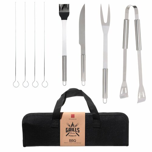 Набор инструментов для барбекю и шашлыка, нержавеющая сталь, 7 предметов, в подарочном чехле