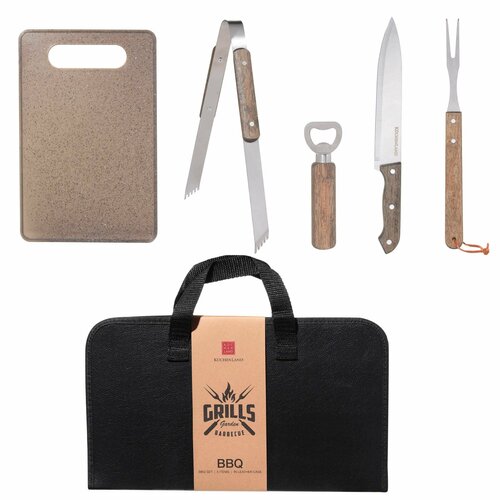 Набор для барбекю Kuchenland, 4 пр, в тканевом кейсе, сталь/пластик, BBQ