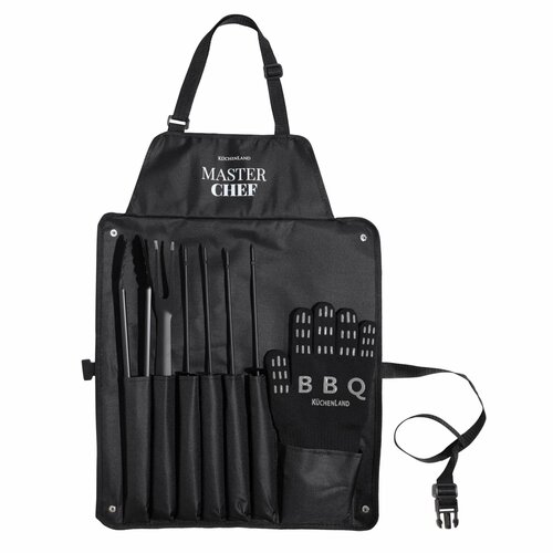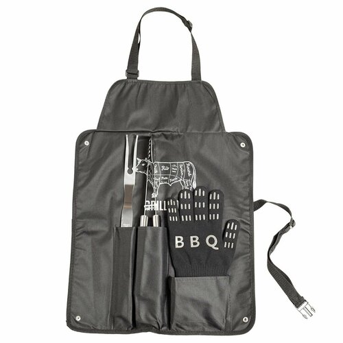 Набор для барбекю, 7 пр, в фартуке, черный, BBQ