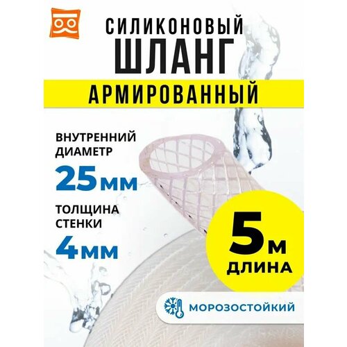 Силиконовый шланг армированный 25 мм, дюймовый, стенка 4 мм (5 метров)