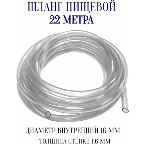 Шланг ПВХ пищевой 16x1.6 мм 22 м, прозрачный, износоустойчивый, гибкий. Для молока и питьевой воды, жидкого теста, сока и минералки.