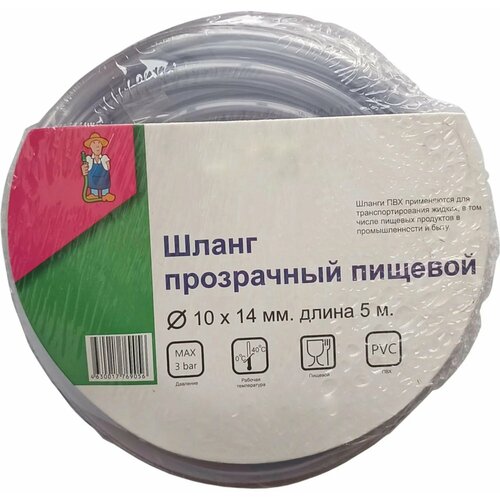 Шланг ПВХ пищевой 16x1.6 мм, 15 м прозрачный - незаменим в домашнем хозяйстве и на даче. Подходит для молока, напитков и алкоголя.