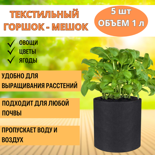 Текстильный мешок-горшок без ручек 1 л, 5 шт