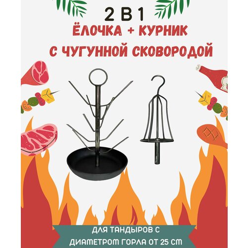 Набор для тандыра шашлычница + курник D - 20.5 см, чугунная сковорода черный