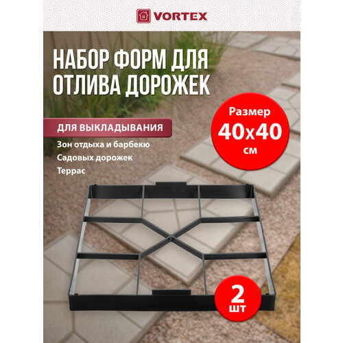 Форма для садовых дорожек VORTEX 40х40 см, комплект 2 шт, пластик, чёрная