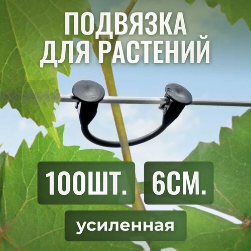 Подвязка для растений, Держатель для цветов садовый, Крючки черные на проволоку "с пяточкой" и двойным крюком, 6см, 100шт