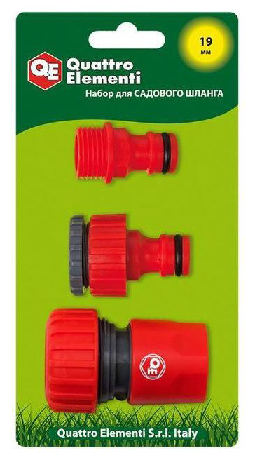 Набор поливочный QUATTRO ELEMENTI 3 предмета. Соединитель 3/4"-1шт штуцер 1/2" и 3/4" 100022726374