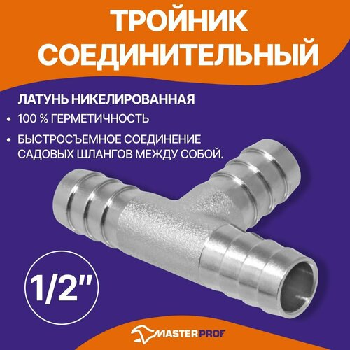 Тройник соединительный для садовых шлангов диаметр 12 мм, латунь