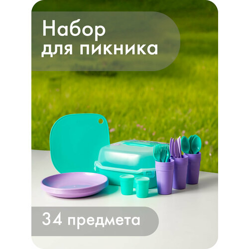 Набор посуды для пикника №31, Альт-Пласт, 34 предмета на 6 персон, пластик