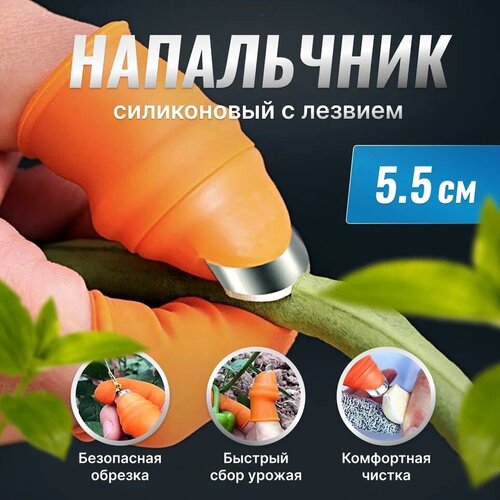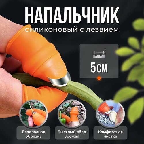 Садовый нож напальчник силиконовый 5см (оранжевый)