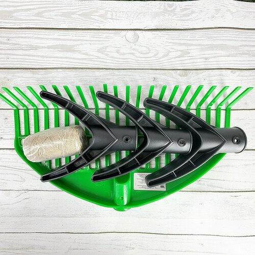 Набор садовый, грабли Гардения зеленые, подпорка для деревьев 3 шт и шпагат