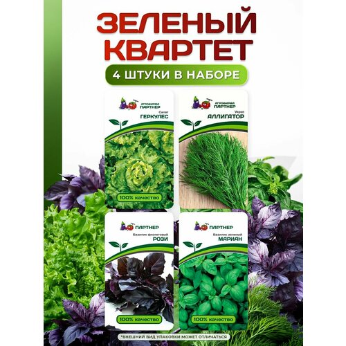 Набор семян: Зеленый квартет - базилик, укроп, салат