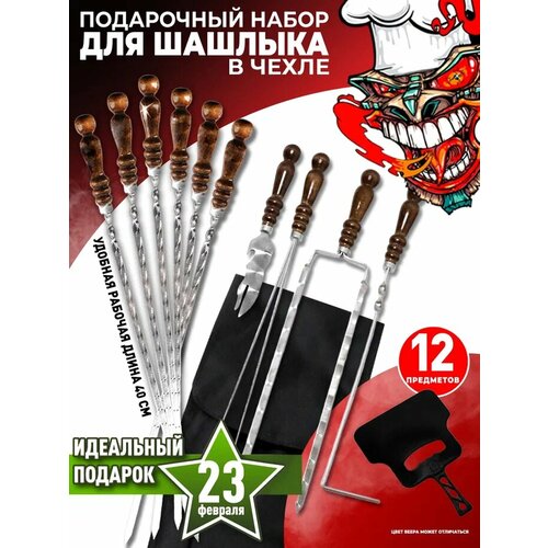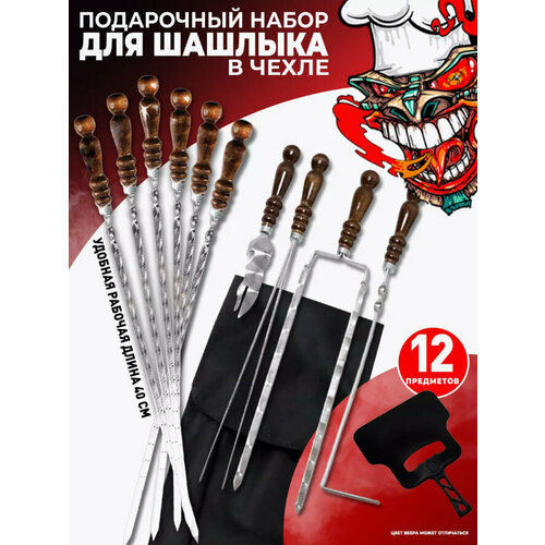 Премиум набор шампуров с деревянной ручкой с чехлом, 12 предметов