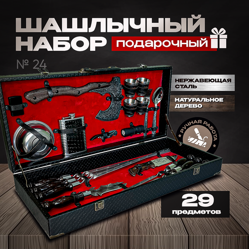 Шашлычный набор в подарочном кейсе №24 отделка внутри красный велюр