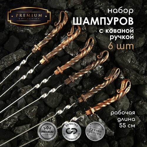 Набор шампуров, 55 см, 6 шт "Скорпион" для мангала, шашлыка, подарочный