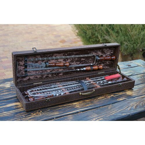 Подарите шашлычный набор в кейсе знакомым рыбакам и охотникам, например, коллеге, начальнику, военному, мужу, брату или отцу на памятную дату. Мужчины будут в восторге от такого сюрприза! Это также отличный вариант в качестве корпоративного подарка руководителю на Новый год, день рождения, юбилей, свадьбу, 23 февраля.комплектация Чехо
