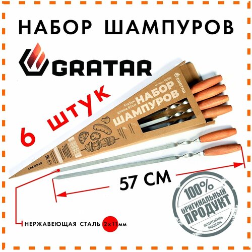Шампур Gratar НШ-6, 57 см, 6 шт., 6 шт.