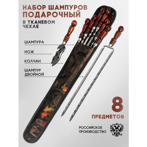 Набор шампуров подарочный с деревянной ручкой в чехле