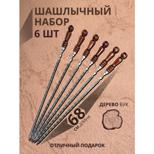 Шампура набор с деревянной ручкой 6 штук, общая длина шампура 62 см