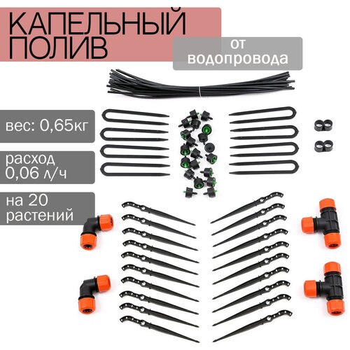 ЖУК Набор капельного полива от емкости, 18 м, 60 шт.