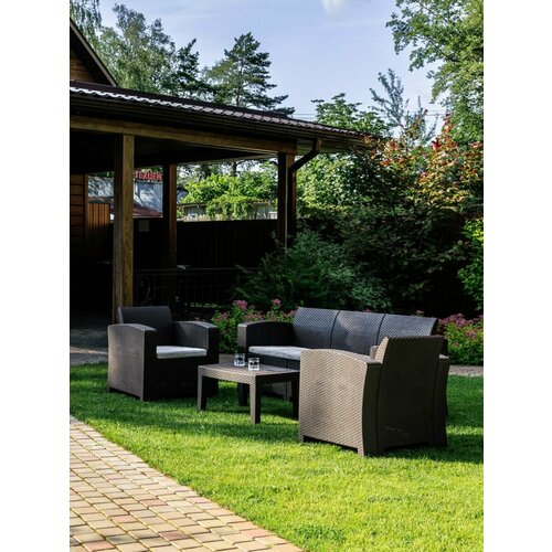Комплект садовой мебели Royal Family LANA LUX XS (2 пластиковых кресла + кофейный столик), коричневый