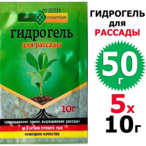 50 г Гидрогель 5 уп х 10 гр (всего 50 г), для проращивания семян, выращивания рассады Долина Плодородия