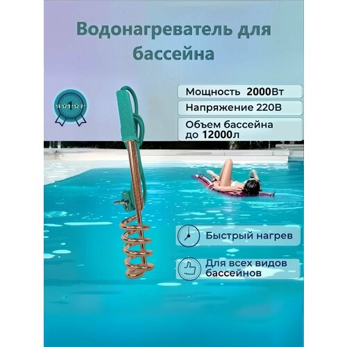 Водонагреватель погружной для бассейна 2 кВт, тэн для бассейнов (КОД: 7076.-16)