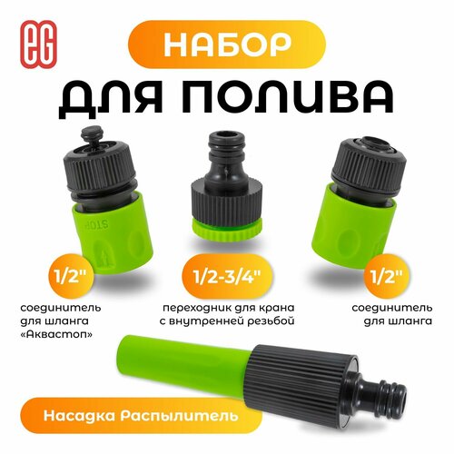 Набор для полива, 3 быстросъёмных соединителя для садового шланга + распылитель, 1/2"-3/4"