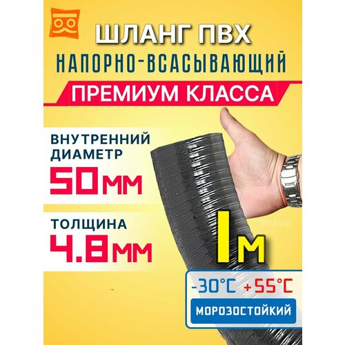 Напорно-всасывающий шланг для откачки 50 мм (12 метров), Морозостойкий, Армированный ПВХ шланг для насосов