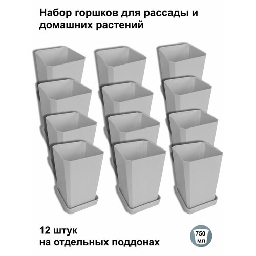 Горшки для рассады и цветов, 12 штук на отдельных поддонах, белые