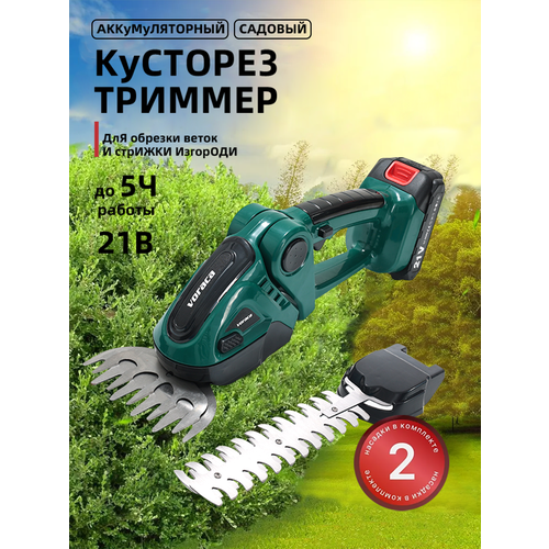 Кусторез садовый с 2 аккумуляторами/Секатор ручной с сменными насадками/Синий