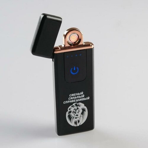 Зажигалка электронная "Смелый, сильный, справедливый", USB, спираль, 3 х 7.3 см, черная 5244316