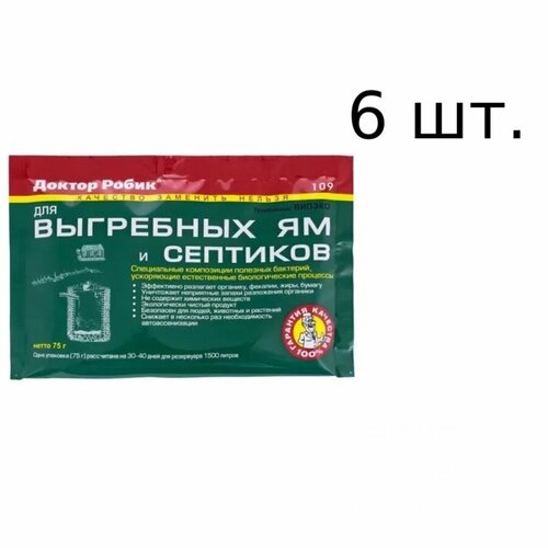 Доктор Робик Бактерии для септиков, выгребных ям и дачных туалетов 6 шт, 450 гр. (109)