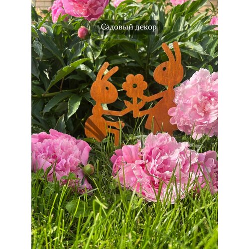 Садовая фигура "Муравьи влюбленная пара", ржавый декор, 34 см, металл