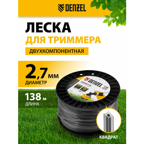 Леска для триммера двухкомпонентная Denzel витая квадратная 3, 0мм х 12м, блистер SkyCutter 96842