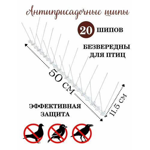 Противоприсадные шипы от птиц ANYSMART, L=50 см, 20 шипов, 2 шт