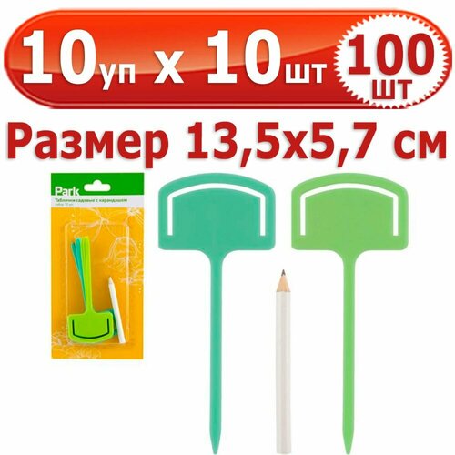 100 шт Табличек садовых пластиковых с 10 карандашами (по 1 в наборе) 13,5х5,7 см, 10 наборов х 10 шт (всего 100 шт), Park