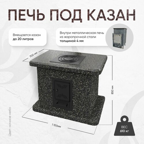 Удобная и надежная печь для приготовления пищи на открытом воздухе в казане ёмкостью 8-12 л. Предусмотрено использование печи с вар...