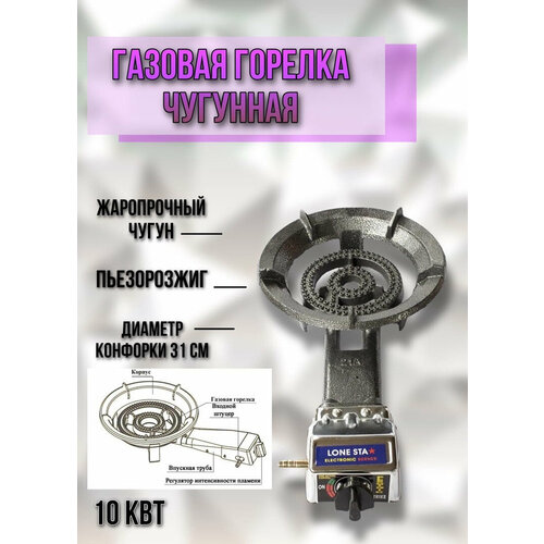 Газовая горелка Восток Стиль, чугун, 31 см, с пьезоподжигом, для казанов