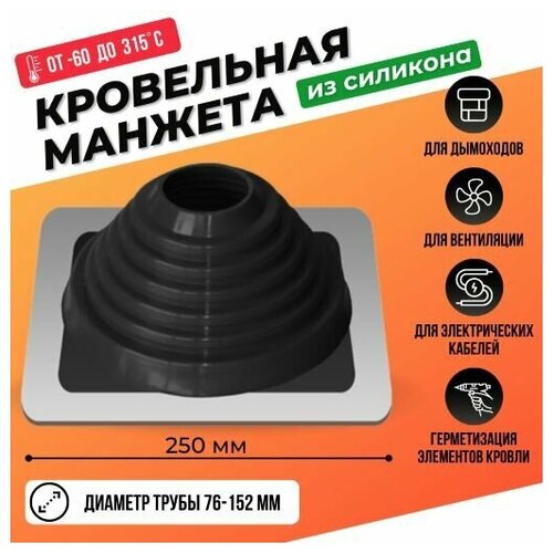 Кровельный уплотнитель дымохода прямой № 4 силикон 76-152 mm чёрный