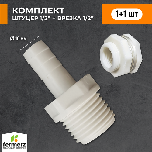 Комплект: штуцер для шланга 1/2 + врезка 1/2 для бочки и бака по 1 шт — надёжное соединение без протечек