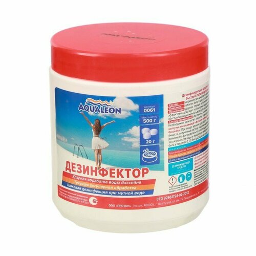 Быстрый стабилизированный хлор для бассейна Aqualeon таблетки по 20 гр, 0,5 кг (комплект из 2 шт)
